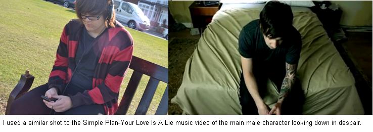 I feel that my music video challenged the conventions of a rock music video because I chose a narrative based music video where the artist does not perform in any part of the video. I decided not to have the artist perform because having actors interpret the lyrics would portray the meaning of the song more clearly. I chose to have the main male character shown as weak and heartbroken which is a role reversal of the common stereotype where the female is destroyed by the end of the relationship and a strong male is seen. The meaning behind the role reverasal is to demonstrate males can also be hurt by a breakup that they have feelings similar to everyone else and both sexes are affected by these emotions and feelings. The female in the video had the dominating role in the relationship in the narritive of my video and is shown as the cause of the main males breakdown. The meaning of the selected roles for characters is so the audince feels sympathy for the main male character. Some of the video is not fully narrated so therefore contains a hidden narritive of why the relationship broke down which is a common convention of a music video to keep the audience wondering the reasons behind the break up.